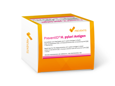 PreventID® H. pylori Antigen is an immunochromatographic rapid test for the qualitative detection of H. pylori antigens in stool samples to support the diagnosis of H. pylori infection.
